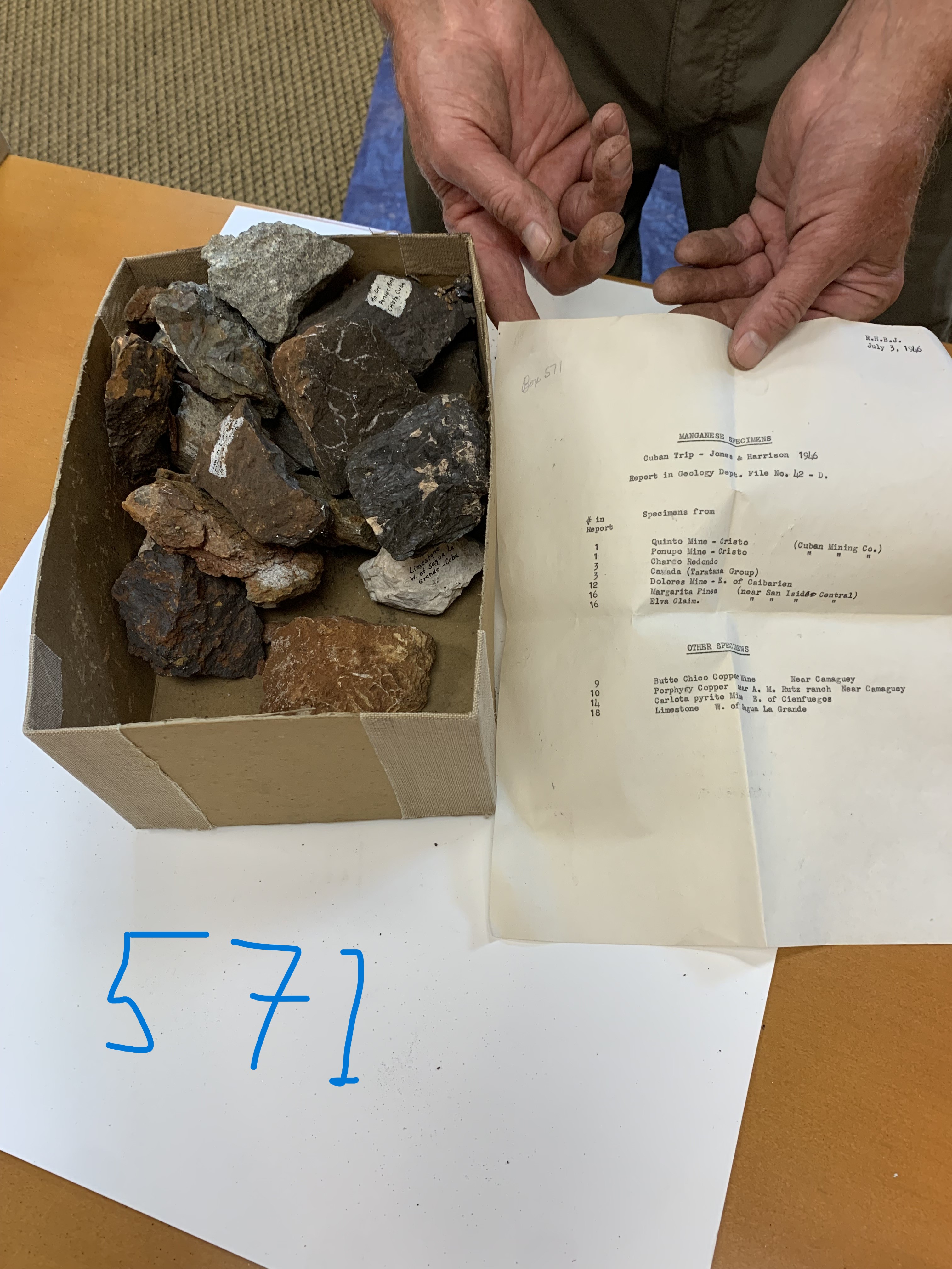 List of specimens (manganese). This sample was likely collected between 1926 and 1969.